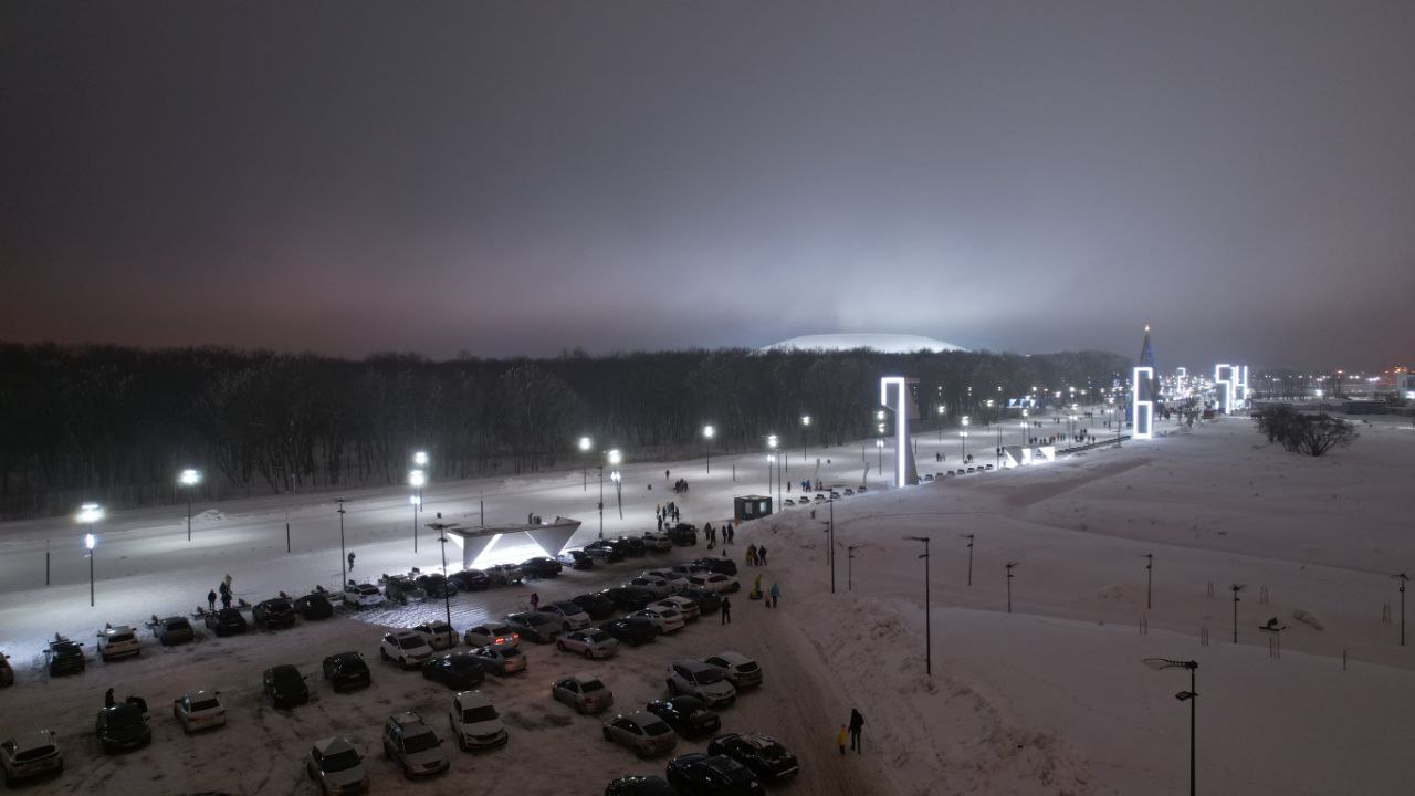 Самарцы встретили Новый год не только в своих квартирах и домах, но и около стадиона Солидарность Арена Самара. Местный блогер Сергей Бобин снял гуляния с высоты птичьего полёта.