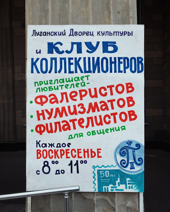 Совсем иначе выглядит Луганск. Арсений побывал и там. По воскресеньям в здании Луганского дворца культуры проходят встречи голубеводов, виноградарей и выставки.