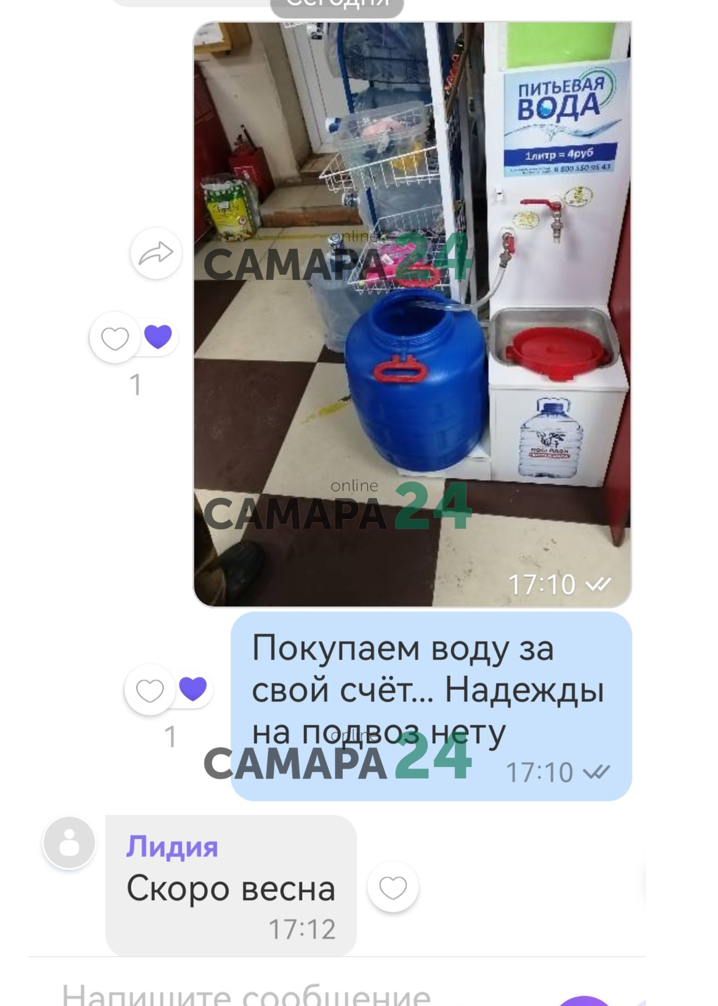 - Пенсионеры не выдерживают физических нагрузок и попадают в больницы, как это произошло 2 марта 2023 года с моей мамой. У неё поднялось давление, начался гипертонический кризис. Также в посёлке проживают семьи мобилизованных с малыми детьми, многодетные семьи... Водообеспечение - это не единственная проблема посёлка Зелененький Волжского района Самарской, но в данный момент - глобальная, - уточняет Мария.