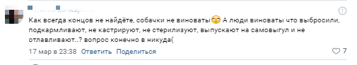 - Как всегда концов не найдёте, собачки не виноваты. А люди виноваты, что выбросили, подкармливают, не кастрируют, не стерилизуют, выпускают на самовыгул и не отлавливают..? Вопрос конечно в никуда, - пишет Евгения.
