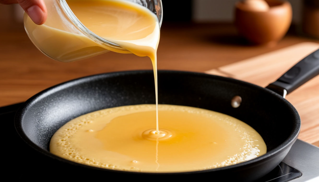 Добавьте яйцо и слегка взбейте до однородности. Почему нельзя просто всё перемешать вилкой на глаз? Потому что однородная смесь — гарантия одинаковых, ровных по структуре оладий. Да и кто хочет комочки?