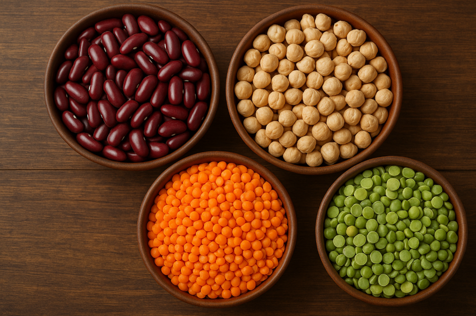 Ваши главные растительные союзники. В 100 г готовой чечевицы — 8–9 г белка, фасоль и нут дают примерно столько же. А в паре с цельными злаками аминокислотный профиль становится ещё лучше.
