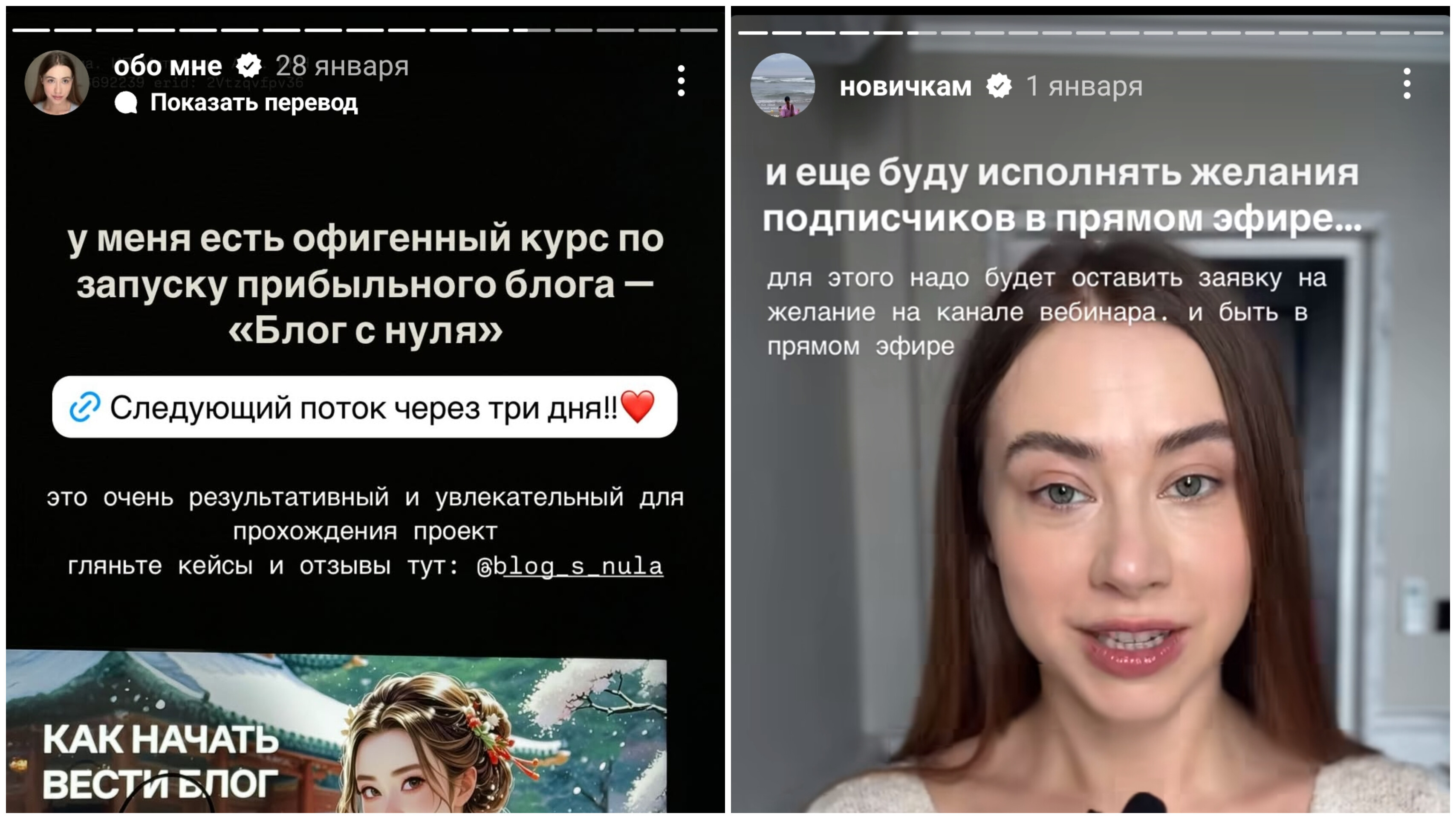 В интернете она представлялась как «Матерь бложья», имела более 2,7 млн. подписчиков. Позиционировала себя как эксперт по продвижению в соцсетях, занималась продажей своих курсов и марафонов. Рассказывала про алгоритмы и охваты запрещенной в РФ сети, за деньги обучала подписчиков правильному ведению блога и как заработать на этом «много красивых денег». Были ли курсы на тему: «Как правильно платить налоги со всех красивых денег» - неизвестно.
