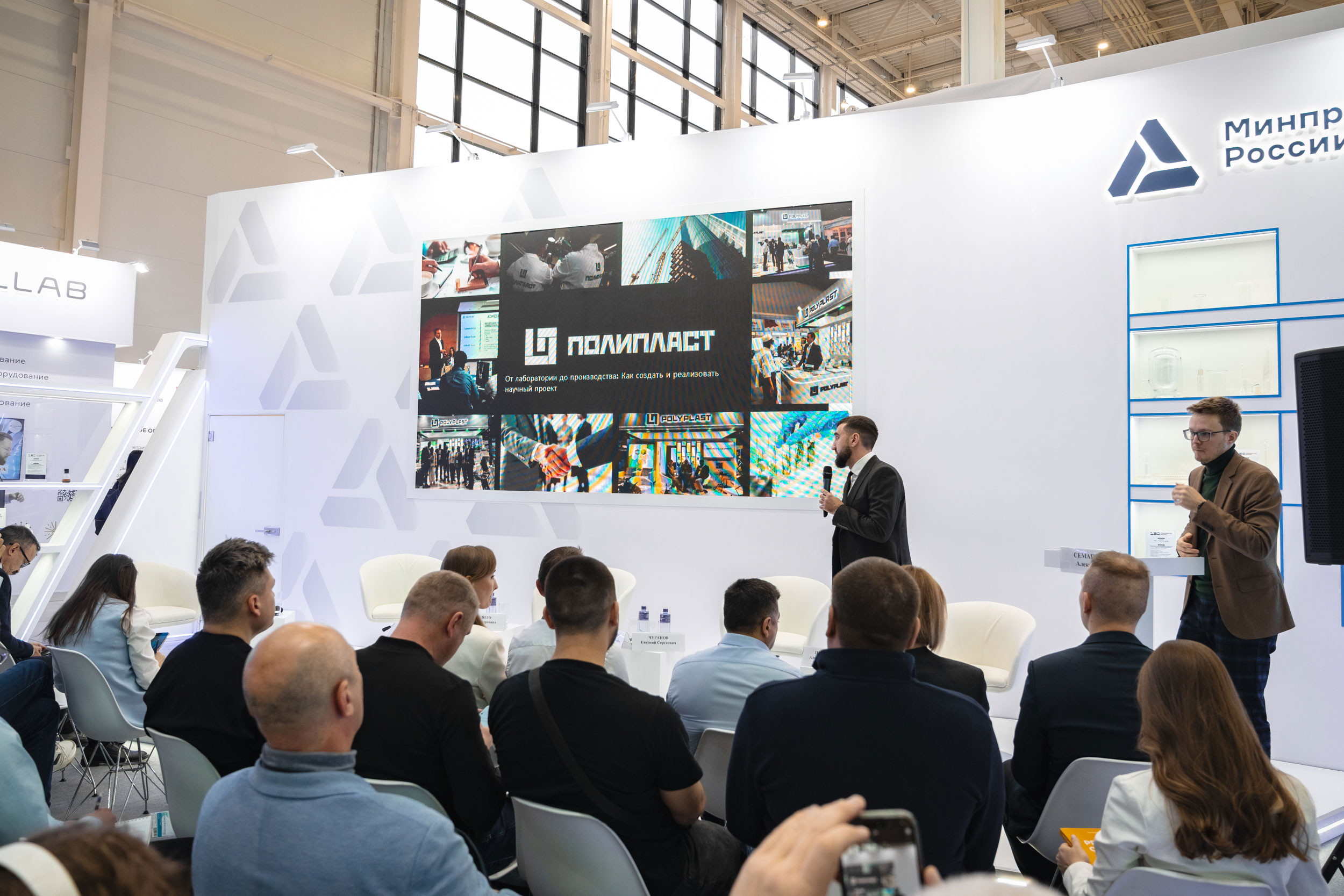 В панельной дискуссии «От лаборатории до производства. Как создать и реализовать научный проект» заместитель главного технолога по полиакрилатам ООО «Полипласт Северо-запад» Александр Прокопенко представил процесс преобразования научной идеи в промышленный продукт: от лабораторных испытаний до запуска в серийное производство. Успешное прохождение каждого этапа зависит от совместной слаженной работы научной и производственной команд.