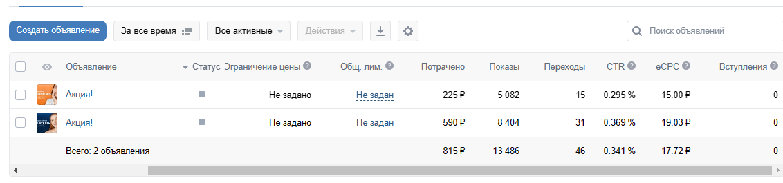 С учётом особенностей небольшого города выбрана цель «Охват» для максимальной узнаваемости, без узкого таргетинга. Бюджет кампании составил 8 500 рублей.