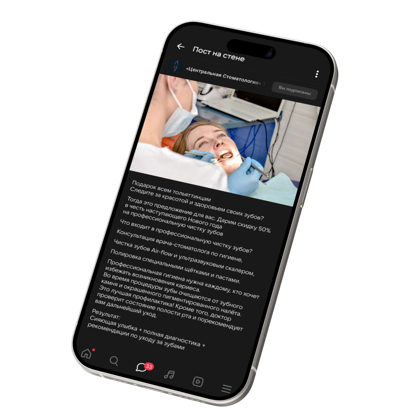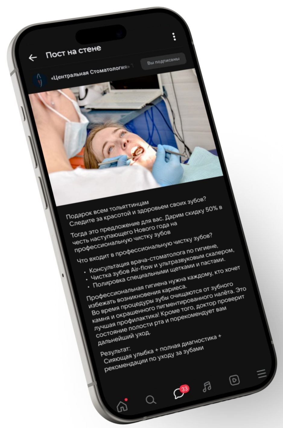 Разработан месячный контент-план, включающий полезные материалы о здоровье зубов, публикации с результатами «до/после» для демонстрации качества лечения, а также репутационные посты о врачах клиники, которые помогают укрепить доверие и повысить лояльность аудитории.