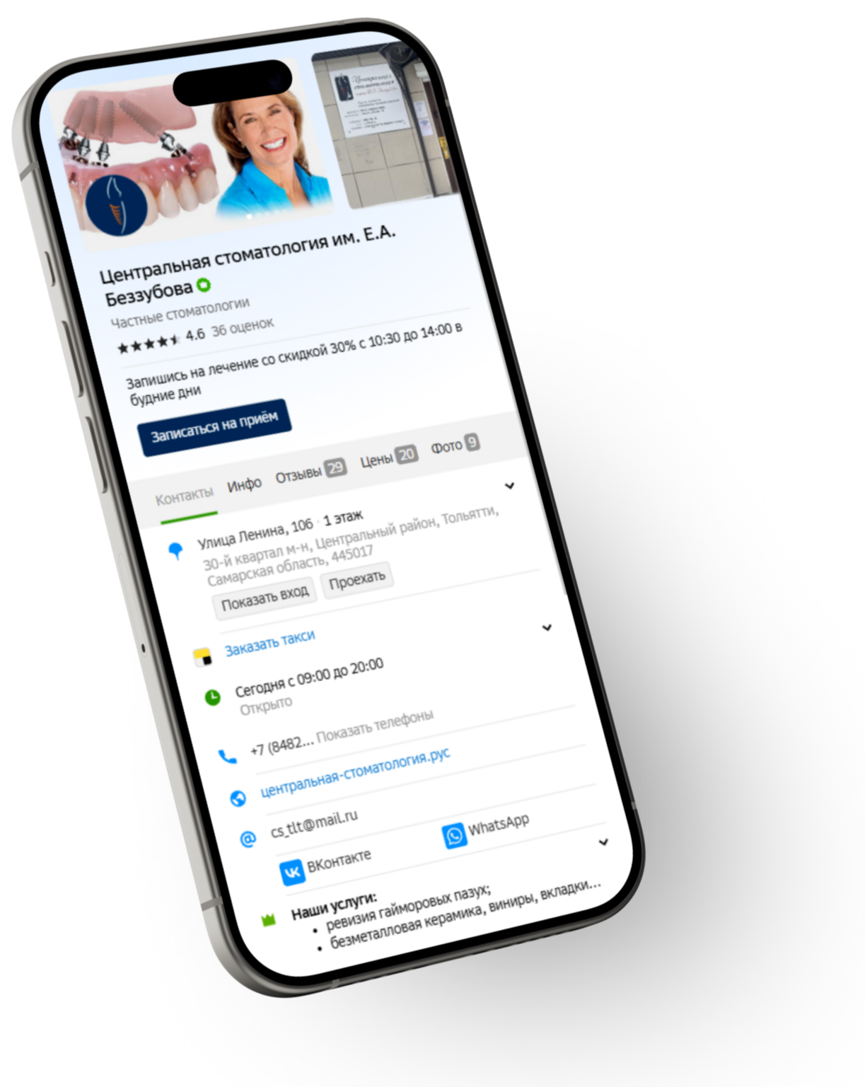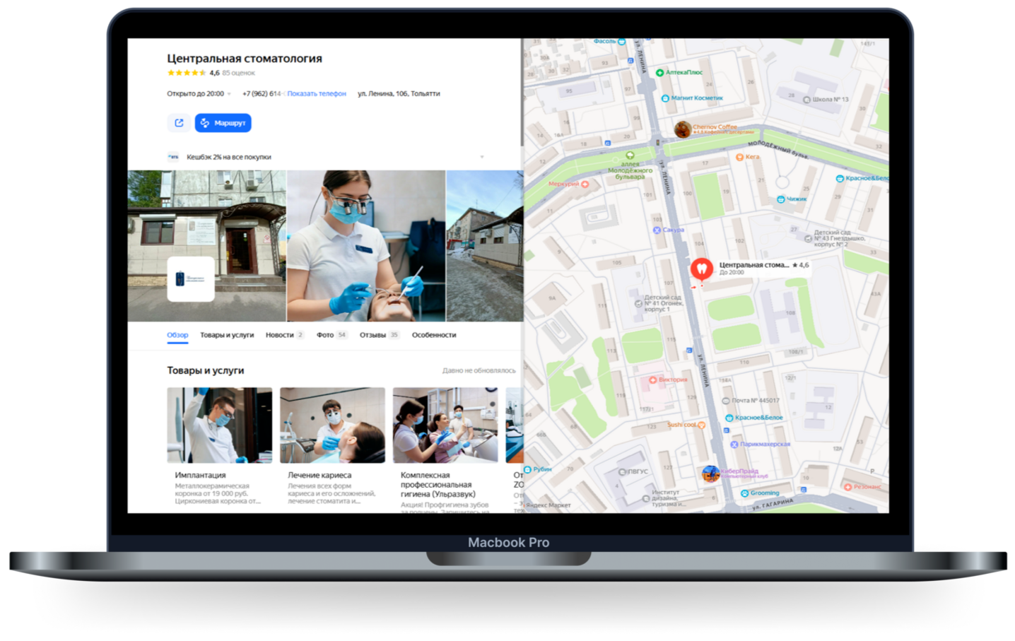Обновлена информация о клинике в 2ГИС, Яндекс.Картах и 32ТОП, а также проведена SEO-оптимизация для привлечения органического трафика.