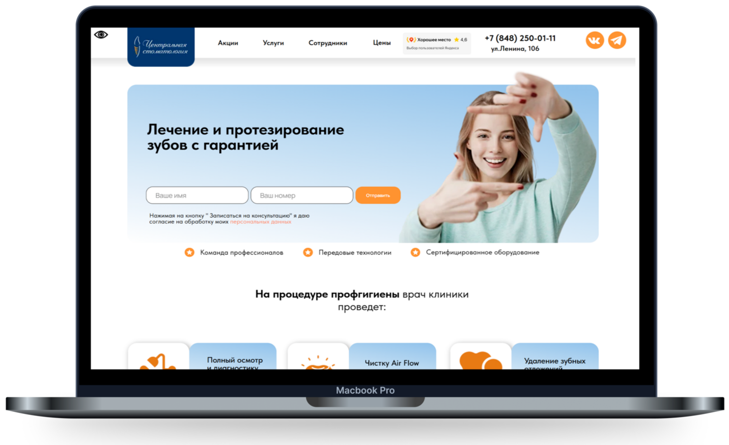 На первом этапе был проведён комплексный анализ рынка стоматологических услуг и конкурентной среды. В результате удалось выделить ключевые преимущества Центральной стоматологии. Также был проведён анализ целевой аудитории, что позволило уточнить портрет потенциальных клиентов.
