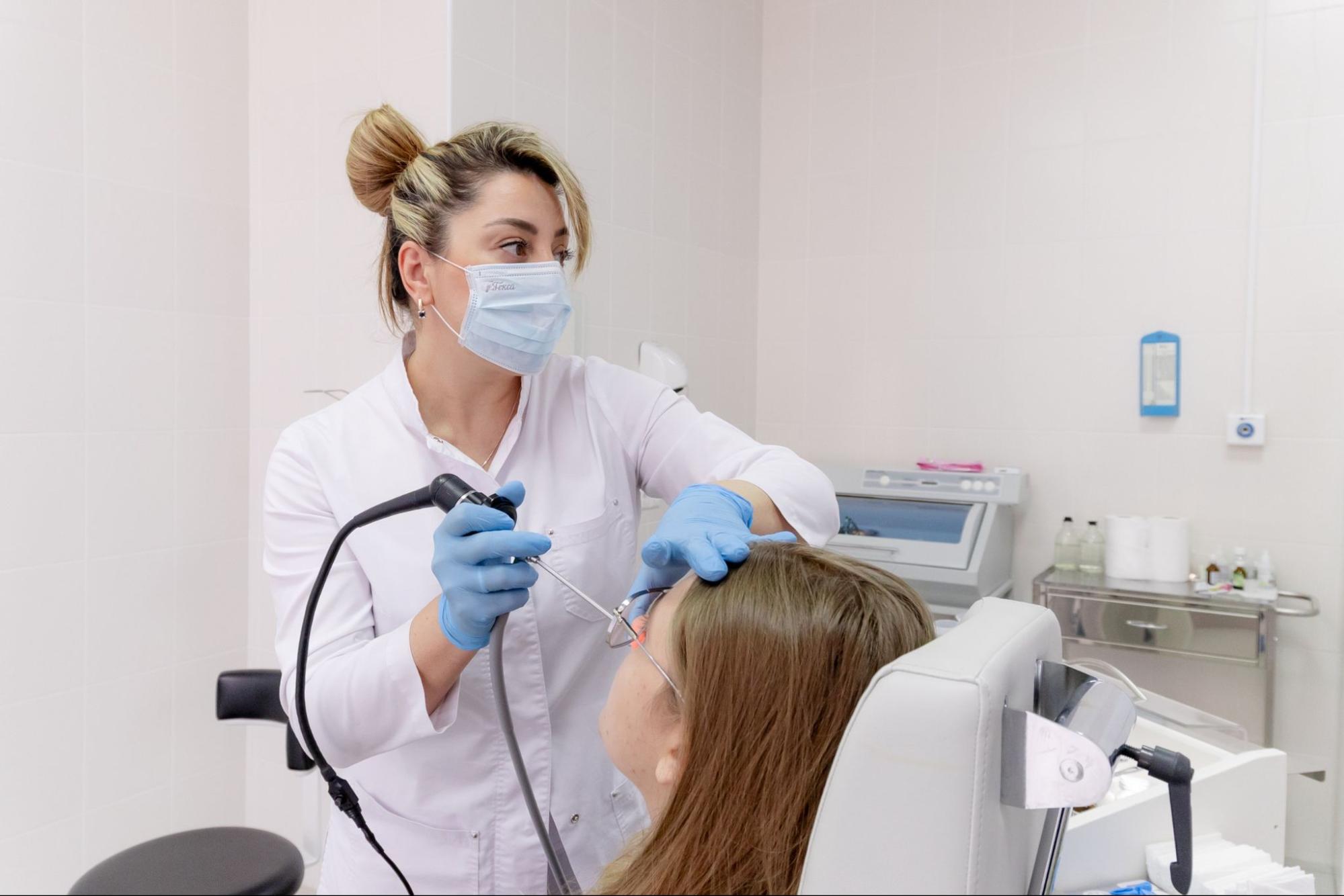 Врач показала мне кабинет и объяснила, какое оборудование здесь используют. Кабинет оснащён ЛОР-установкой — это многофункционально и удобно. Используется эндоскопическая стойка с комплектом оборудования для видеоэндоскопии, включая полный набор жёстких ЛОР-эндоскопов (риноскопы, ларингоскоп, отоскоп), видеокамеру, монитор.