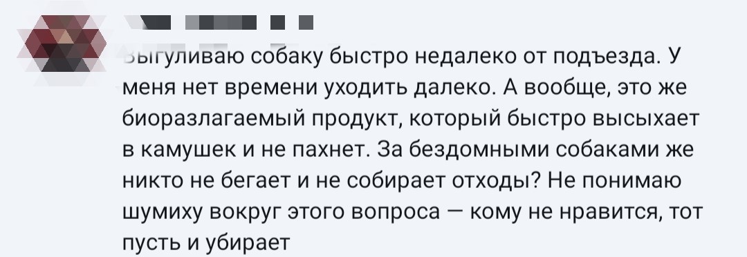 Такой позиции придерживается мало людей, но они есть. Их постоянно обсуждают в общедомовых чатах с прикреплением фотодоказательств. Но тех всё устраивает, а заморочки с пакетиками они считают усложнением жизни.