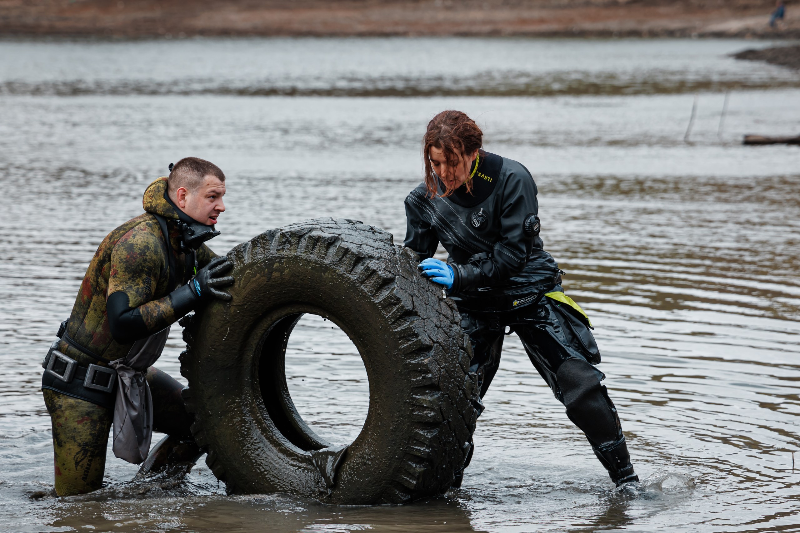 Участников субботника разделили на команды и выделили определённые участки возле берега. Одновременно водолазы работали на глубине. Они подняли с озера старые шины, металлический мусор и забытые раколовки, в которых погибали обитатели озера. Также на дне обнаружили арматуру, стекло и другие предметы, которые делают отдых на озере небезопасным.