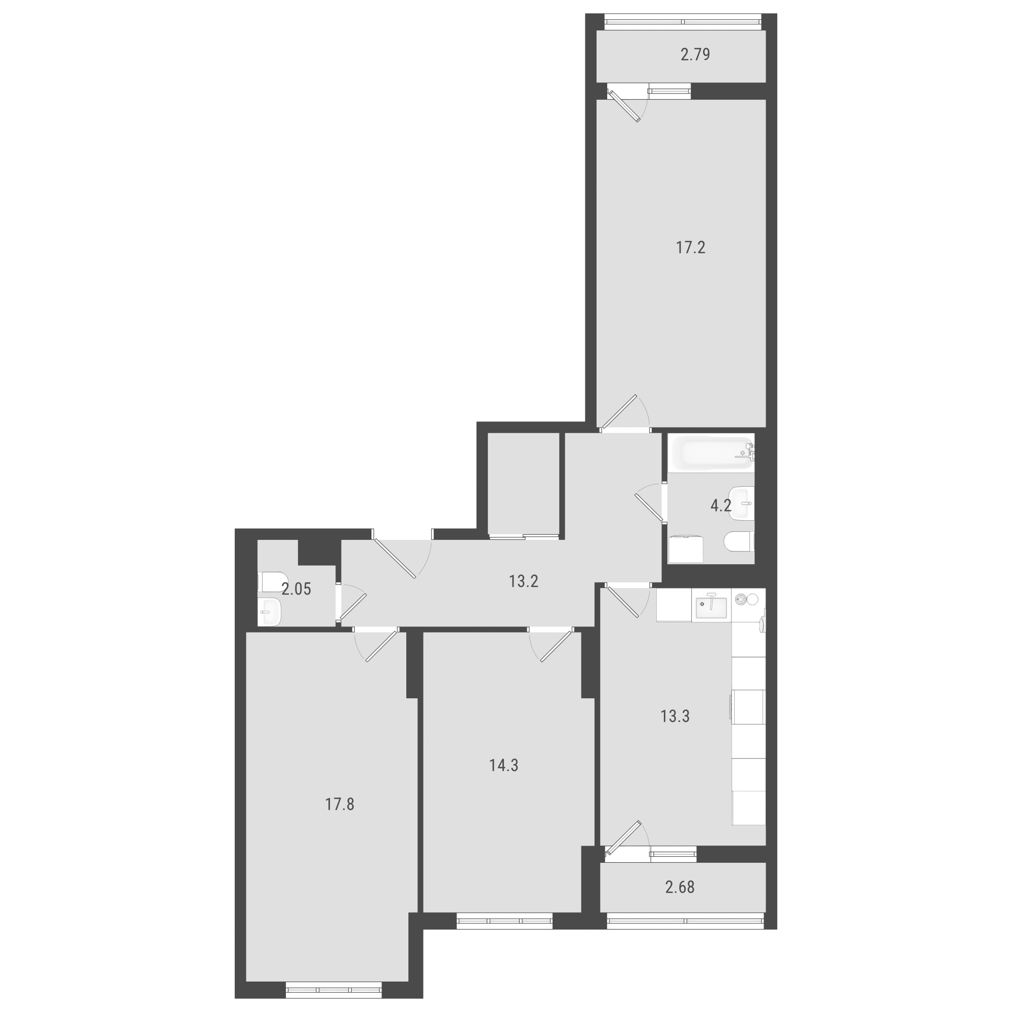 Здесь почти ничего не трогаем. Всё нужное уже есть в изначальной планировке.