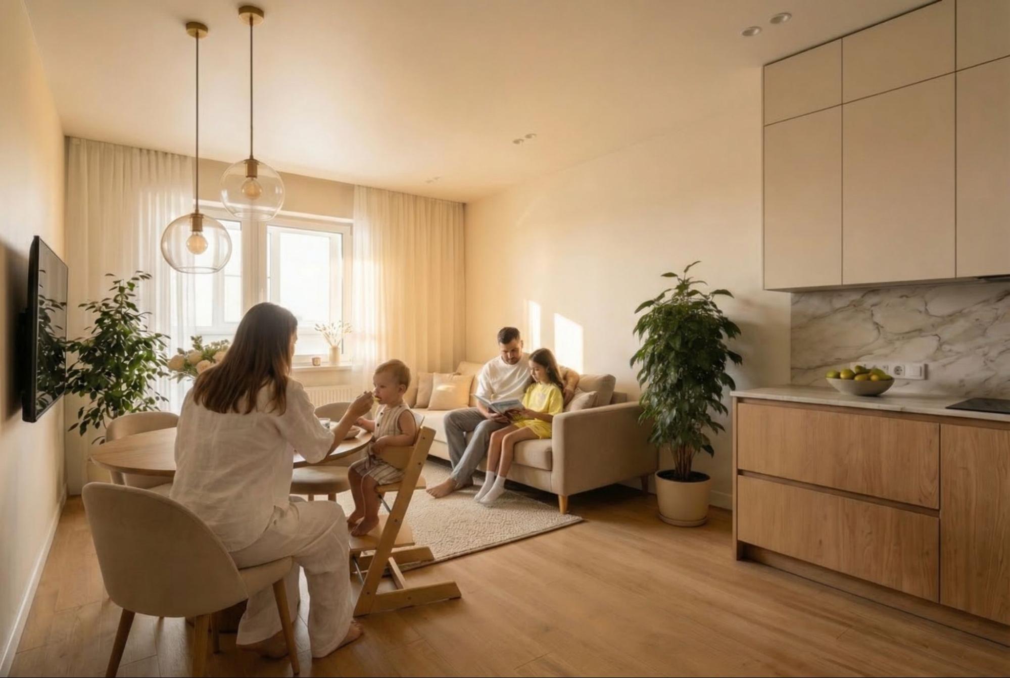 Одна квартира — четыре жизни: дизайнер показала, во что превращается «трёшка» в зависимости от того, кто в ней живёт