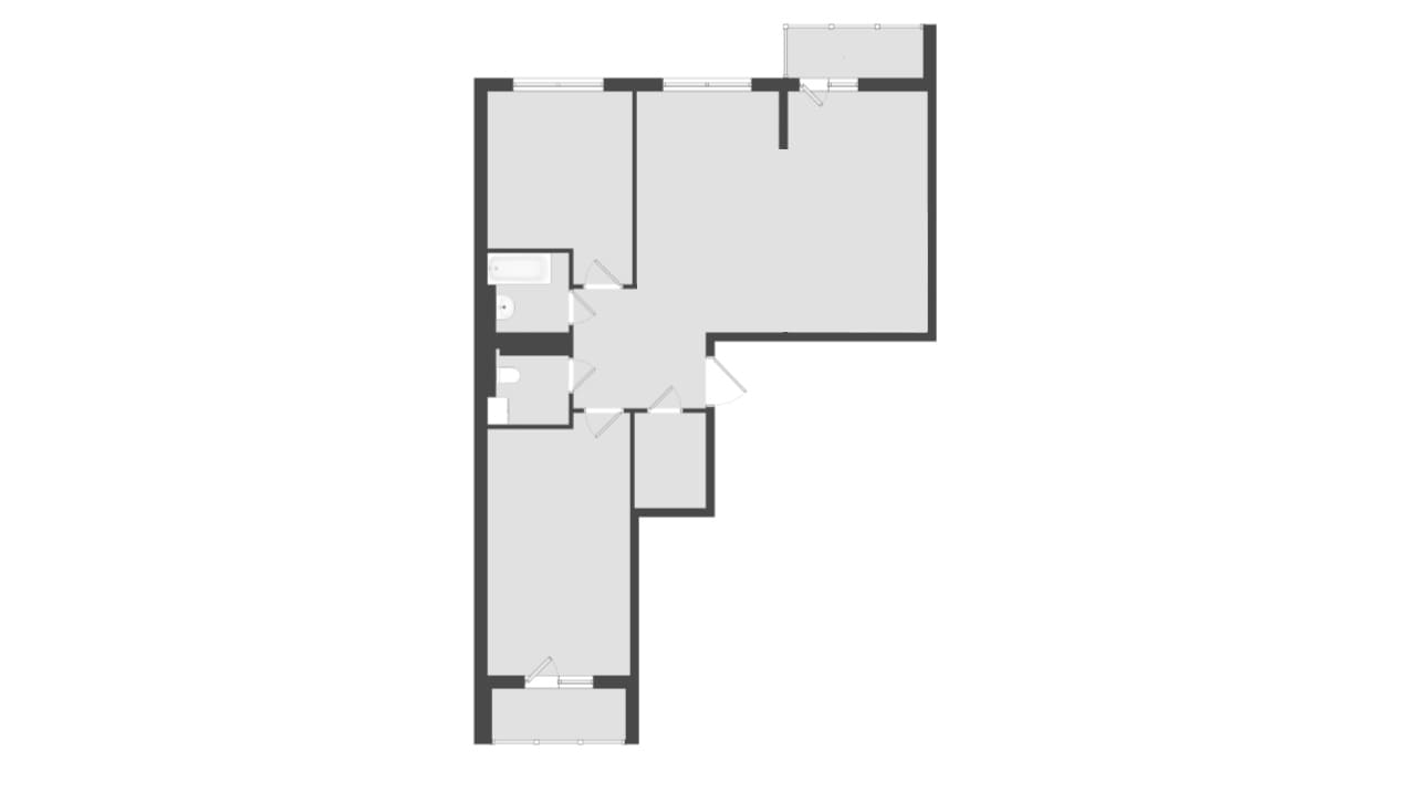 - В этом сценарии я убираю стену между кухней и соседней комнатой и объединяю пространство. Планировка становится более открытой, появляется ощущение воздуха и возможность выстроить полноценную кухню-гостиную. Такой вариант подойдёт тем, кому важнее общее пространство для жизни и общения.