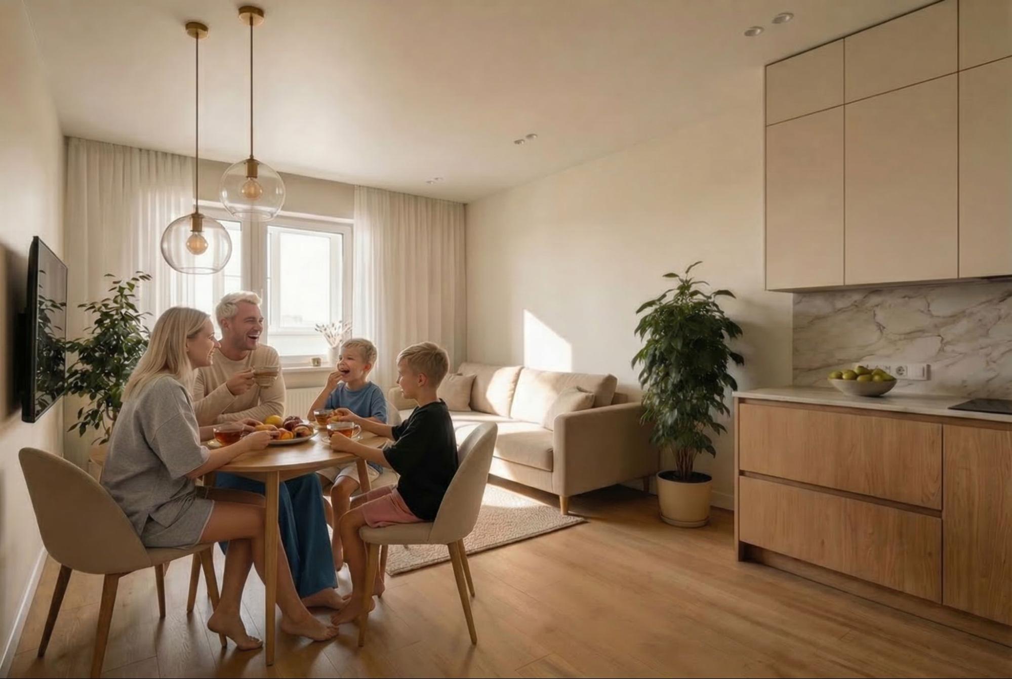 Редакция Самара онлайн 24 попросила дизайнера Ксению Новикову показать четыре варианта для обустройства под разные сценарии жизни: для семьи с маленькими детьми, для семьи с подростками, для пары удаленных работников и для большой семьи. Оказалось, одна и та же квартира умеет быть совершенно разной.