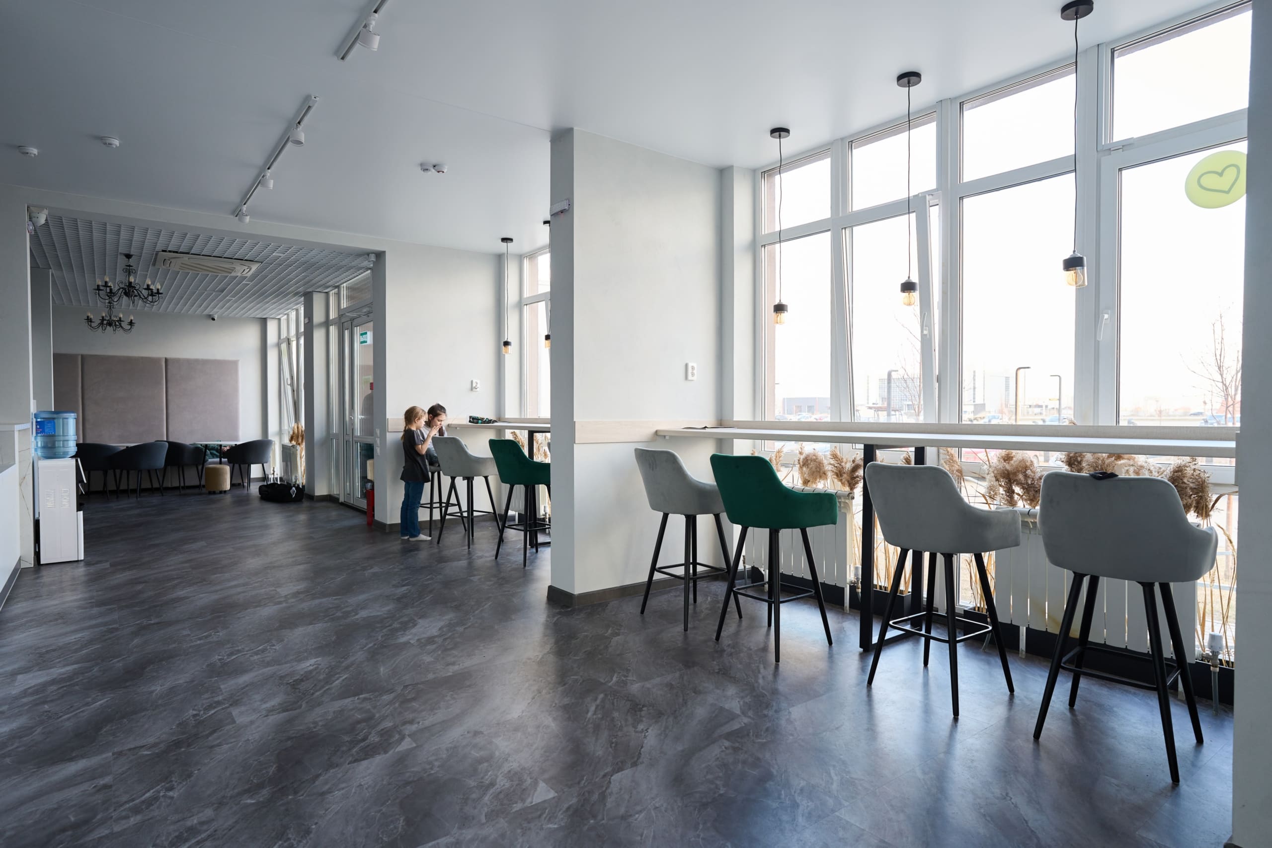 Пространство площадью 270 квадратных метров на первом этаже жилого дома по Южному шоссе объединило коворкинг, два спортивных зала, игровые комнаты, библиотеку, кофейную зону. Здесь проходят мастер-классы, лекции, фитнес, танцы, встречи клубов и ярмарки.