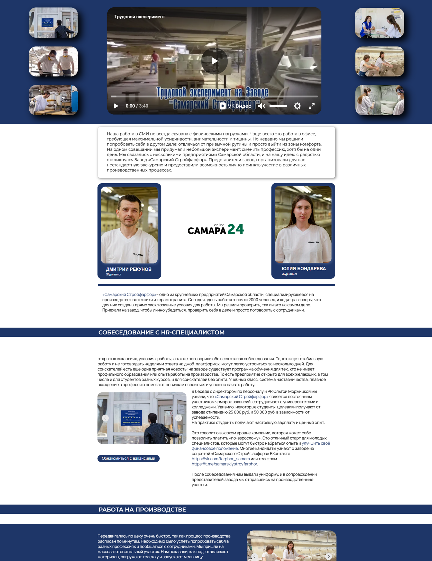 Трудовой эксперимент: один день в роли рабочего завода «Самарский Стройфарфор». Через личный опыт показываем реальную работу на производстве, условия труда и взаимодействие с коллегами, подчеркнув доступность трудоустройства и возможности карьерного роста.