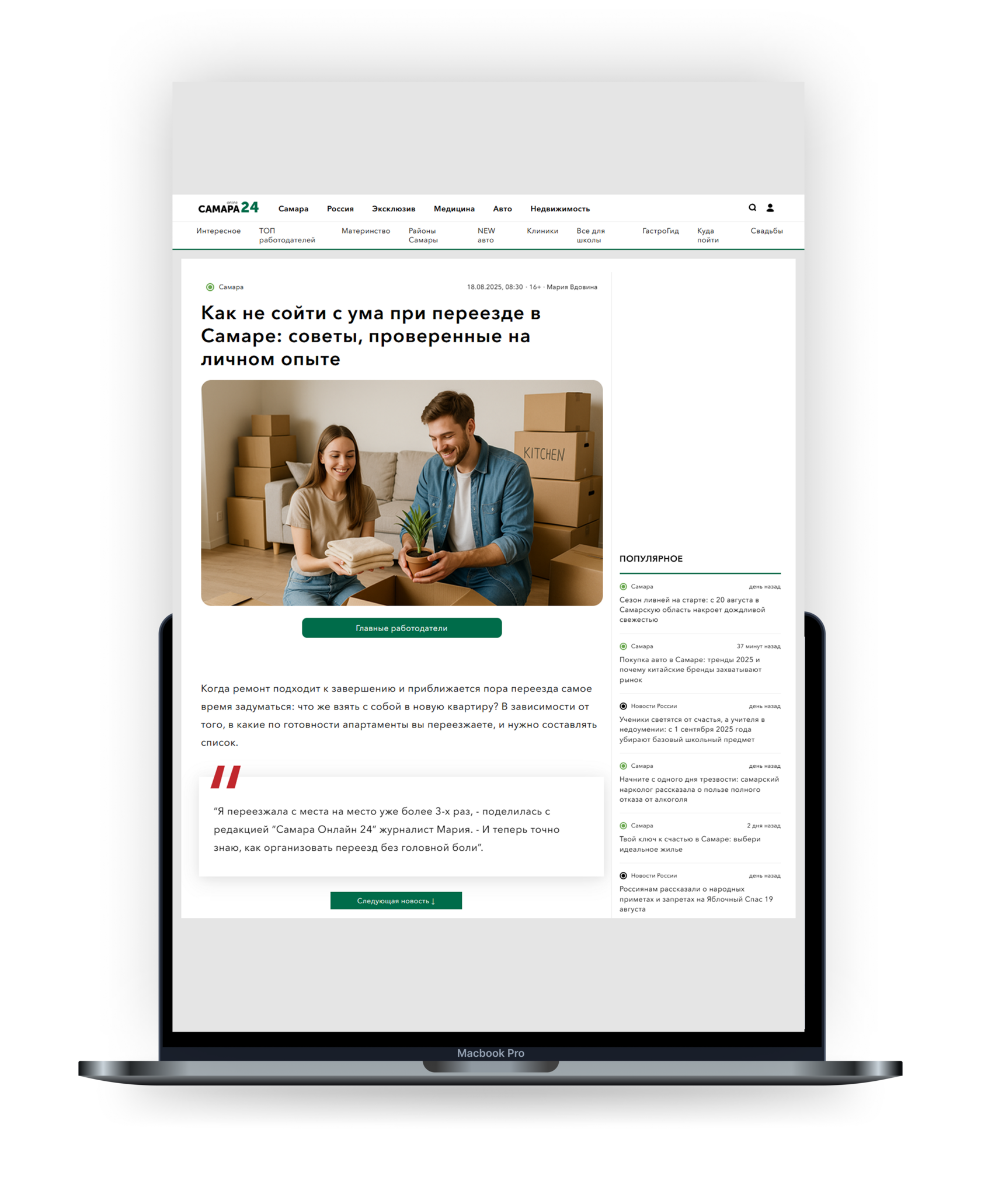 Мы входим в ТОП-10 новостных площадок Самары. Нас читают более 1,5 млн жителей региона ежемесячно. Каждый третий житель области — наш постоянный читатель. Мы знаем, как говорить с локальной аудиторией на её языке — понятно, убедительно и с акцентом на доверие