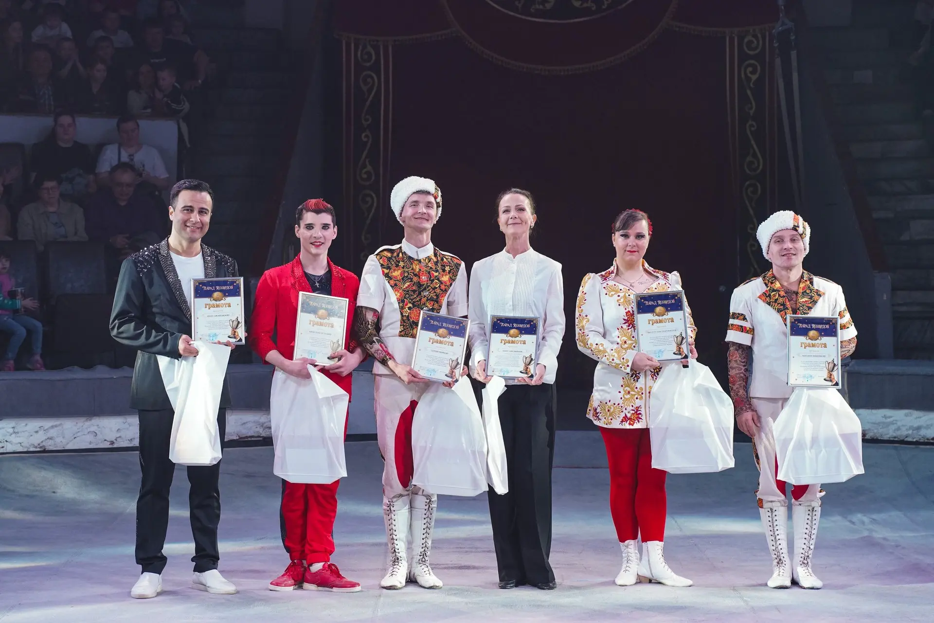 Артисты Российского цирка были награждены почетными грамотами и памятными подарками.