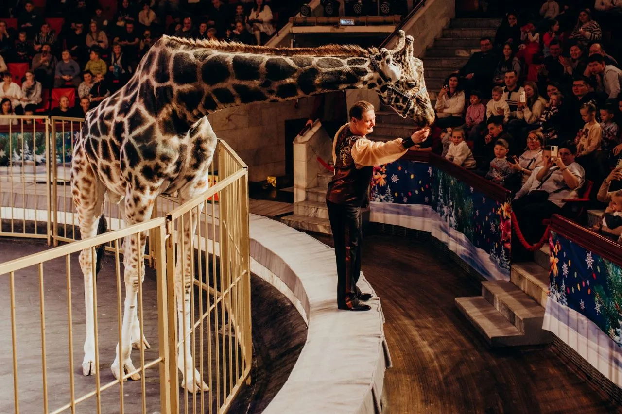 На манеже Самарского цирка чествовали артистов программы «жираф шоу», которые поставили личный рекорд в цирковом искусстве.
