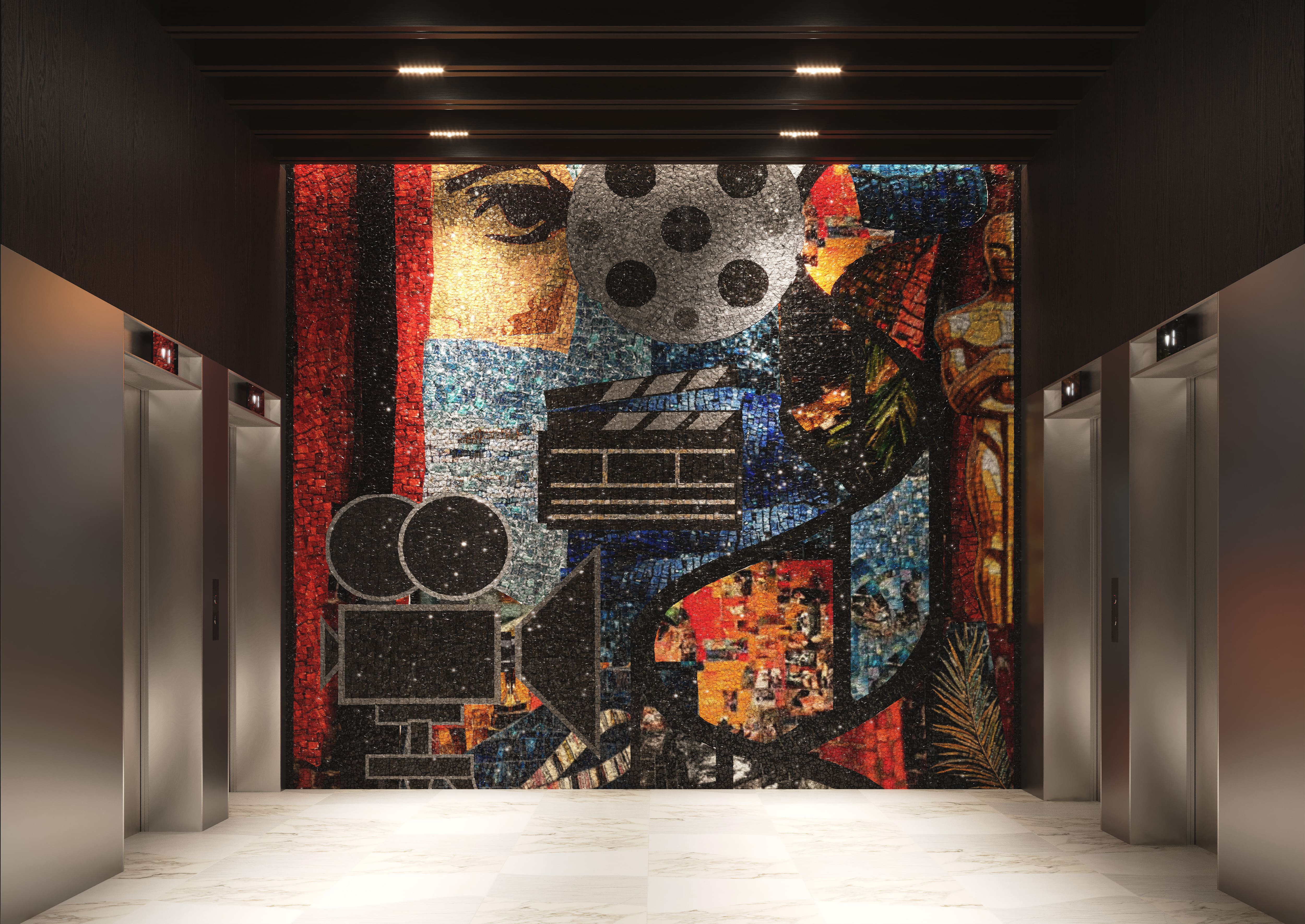 Чтобы поддержать основную концепцию проекта, авторы включили в интерьер вестибюля Дома Кино элементы монументального декоративно-прикладного искусства - большое тематическое мозаичное панно. При создании эскиза для «ЗИМ Галереи» потомственный самарский мозаист Дмитрий Тяпков вдохновлялся мозаикой заслуженного художника РФ Вячеслава Герасимова на доме, стоящем на пересечении улиц Осипенко и Ново-Садовая. Символический киносюжет, знакомый всем самарцам, переосмыслен и актуально исполнен для общественного вестибюля Дома кино.