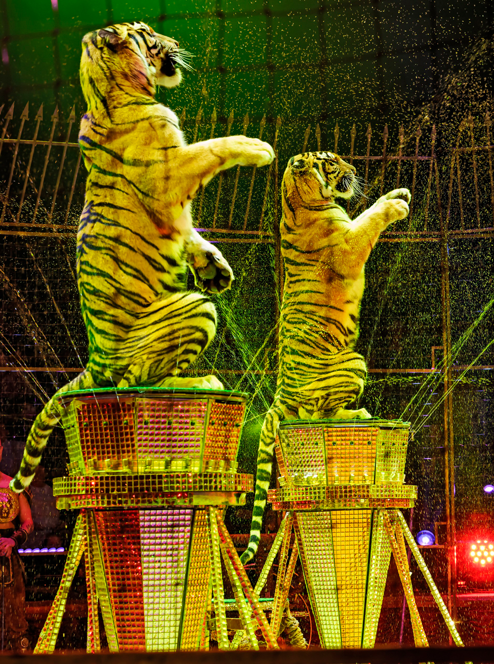- неповторимый реквизит со сложными инженерными решениями, например, единственный в мире вращающийся подиум, позволяющий увидеть номер с разных сторон;